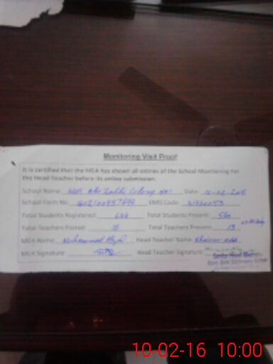 | Certified that this School was Inspected by the Undersigned MEA/DMO Today and the Information Stated Above is as Per Record. | |||||