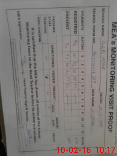 | Certified that this School was Inspected by the Undersigned MEA/DMO Today and the Information Stated Above is as Per Record. | |||||