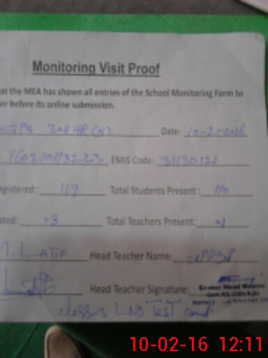 | Certified that this School was Inspected by the Undersigned MEA/DMO Today and the Information Stated Above is as Per Record. | |||||