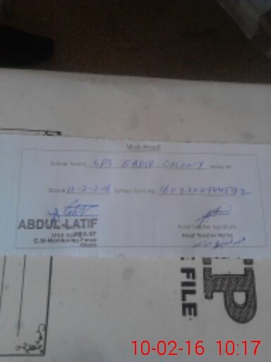 | EMIS Code: 39320385 | Name of School: GPS QADIR COLONY OKARA | |||