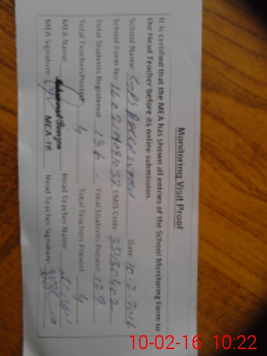 | Certified that this School was Inspected by the Undersigned MEA/DMO Today and the Information Stated Above is as Per Record. | |||||
