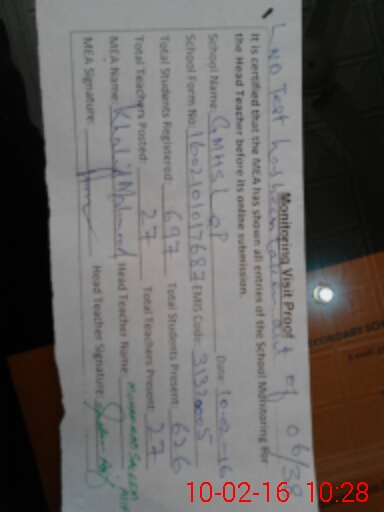 | Certified that this School was Inspected by the Undersigned MEA/DMO Today and the Information Stated Above is as Per Record. | |||||