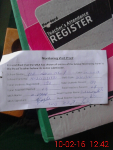 | Attendance Register | Head Teacher | MEA with School | Visit Proof |