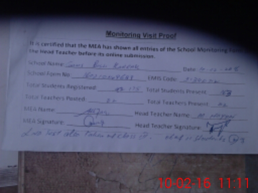 | Certified that this School was Inspected by the Undersigned MEA/DMO Today and the Information Stated Above is as Per Record. | |||||