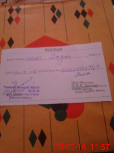 | District: OKARA | Tehsil: OKARA | Markaz: JOIYA - FEMALE | Level: Middle | |