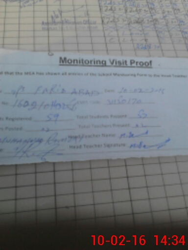 | Attendance Register | Head Teacher | MEA with School | Visit Proof |