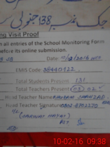 | EMIS Code: 38440122 | Name of School: GPS CHAK NO.138 SB | |||