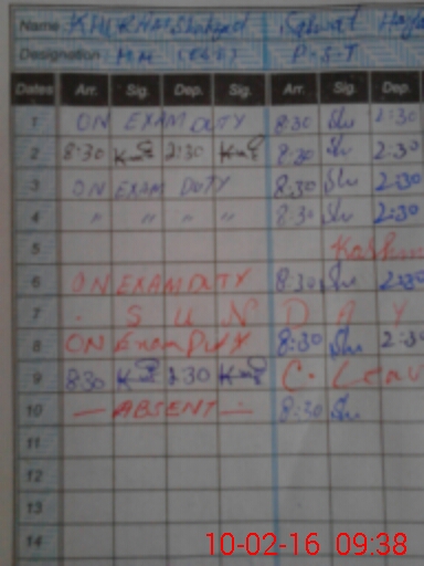 | CNIC | Full Name | Designation | R/C | Absence During Last Calender Month |