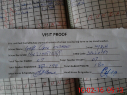 | Attendance Register | Head Teacher | MEA with School | Visit Proof |