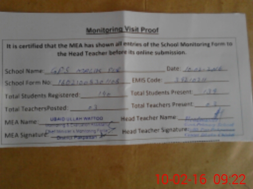 | EMIS Code: 39210211 | Name of School: GPS MALIK PUR PO PAKPATTAN | |||