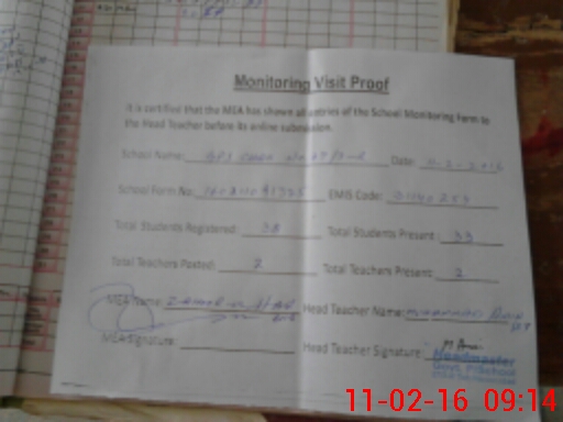 | Attendance Register | Head Teacher | MEA with School | Visit Proof |