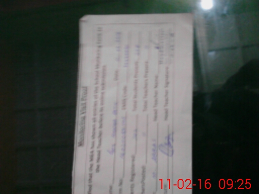 | School Visited by School Health & Nutrition Supervisor (No. of Visits) | 1 | Name1: | RANA IQBAL | Name2: | NIL |