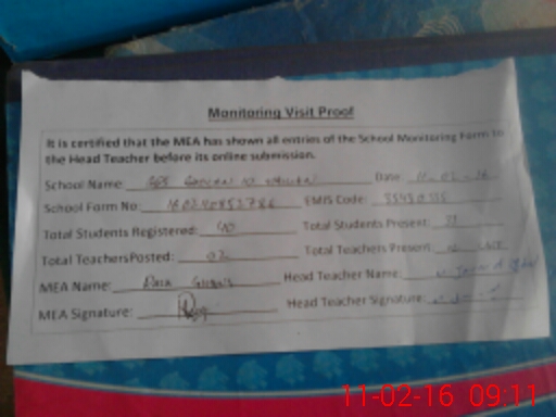 | Certified that this School was Inspected by the Undersigned MEA/DMO Today and the Information Stated Above is as Per Record. | |||||