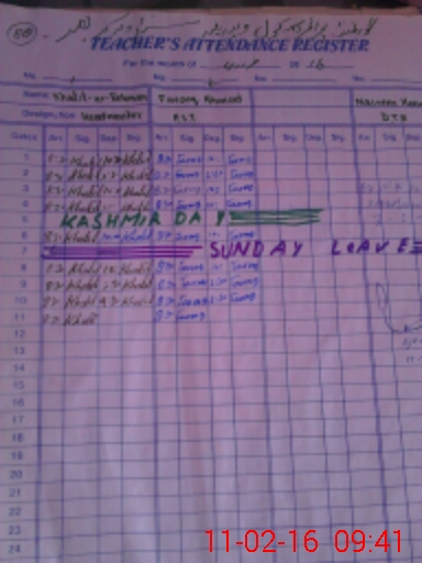 | CNIC | Full Name | Designation | R/C | Absence During Last Calender Month |