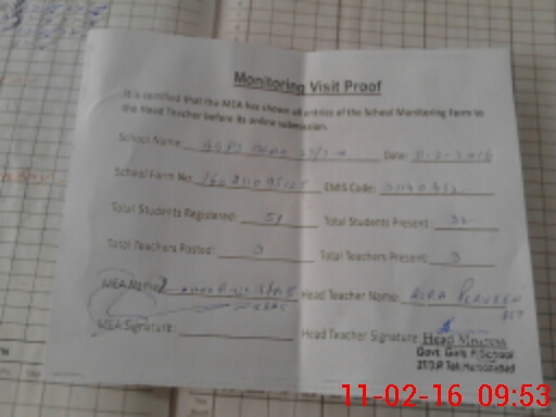 | Attendance Register | Head Teacher | MEA with School | Visit Proof |