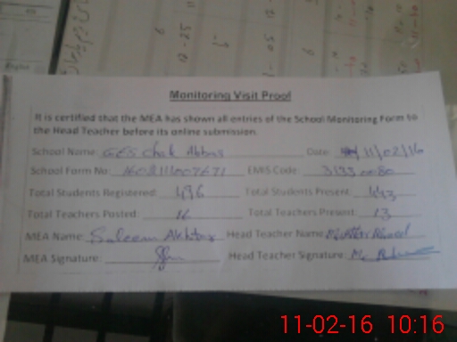 | EMIS Code: 31330080 | Name of School: GES CHAK ABBAS | |||