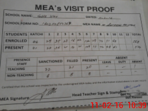 | Certified that this School was Inspected by the Undersigned MEA/DMO Today and the Information Stated Above is as Per Record. | |||||