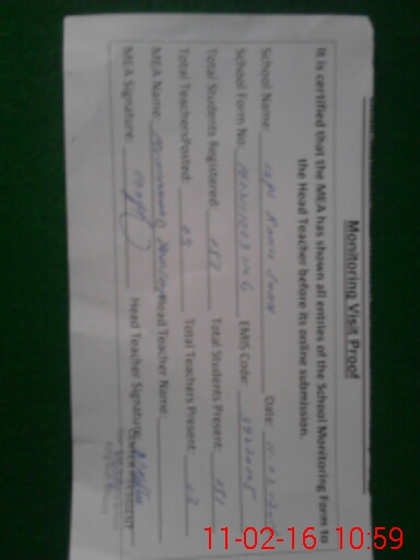 | Certified that this School was Inspected by the Undersigned MEA/DMO Today and the Information Stated Above is as Per Record. | |||||