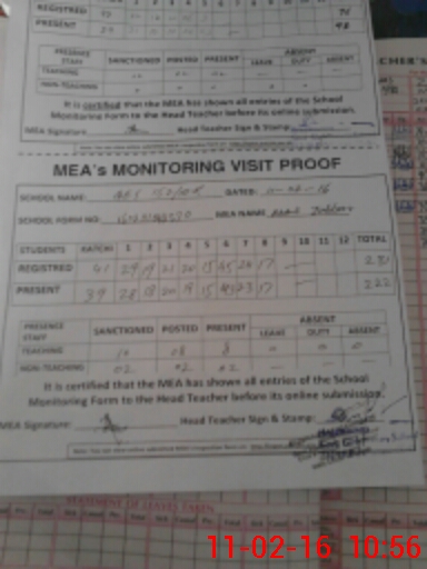 | Attendance Register | Head Teacher | MEA with School | Visit Proof |