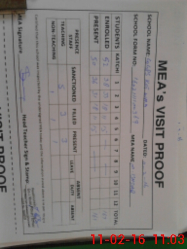 | Attendance Register | Head Teacher | MEA with School | Visit Proof |
