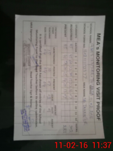 | Monitoring Date: 11-02-2016 | Start Time: 11-02-2016 08:21 AM | End Time: 11-02-2016 11:38 AM | Name of MEA: Mu**** Ja**** | |