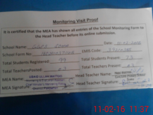 | EMIS Code: 39210385 | Name of School: GGPS CHAK SOMA | |||