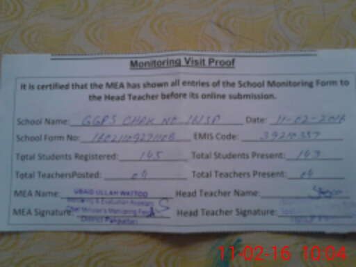 | EMIS Code: 39210357 | Name of School: GGPS 16 SP | |||