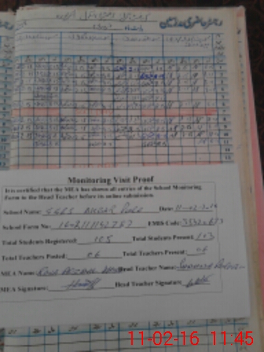 | Attendance Register | Head Teacher | MEA with School | Visit Proof |