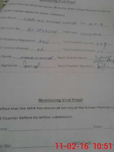 | Certified that this School was Inspected by the Undersigned MEA/DMO Today and the Information Stated Above is as Per Record. | |||||