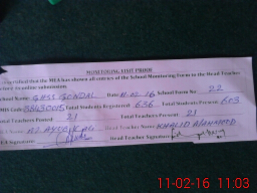 | EMIS Code: 38430015 | Name of School: GHSS GONDAL SARGODHA | |||