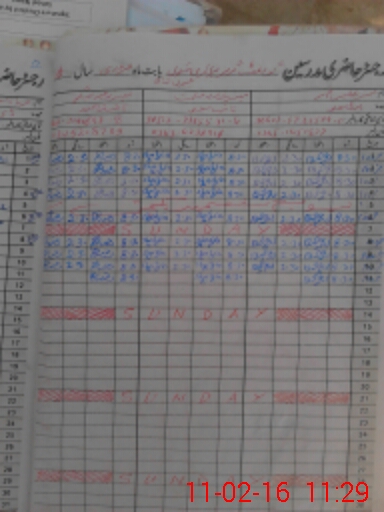 | CNIC | Full Name | Designation | R/C | Absence During Last Calender Month |