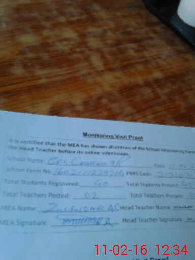 | Certified that this School was Inspected by the Undersigned MEA/DMO Today and the Information Stated Above is as Per Record. | |||||