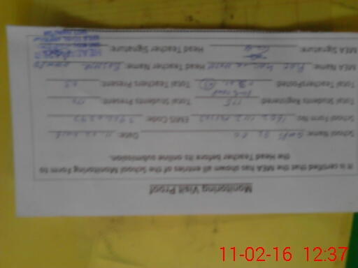 | Attendance Register | Head Teacher | MEA with School | Visit Proof |