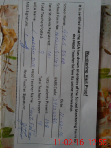| Certified that this School was Inspected by the Undersigned MEA/DMO Today and the Information Stated Above is as Per Record. | |||||