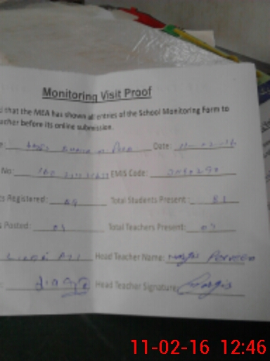| Certified that this School was Inspected by the Undersigned MEA/DMO Today and the Information Stated Above is as Per Record. | |||||