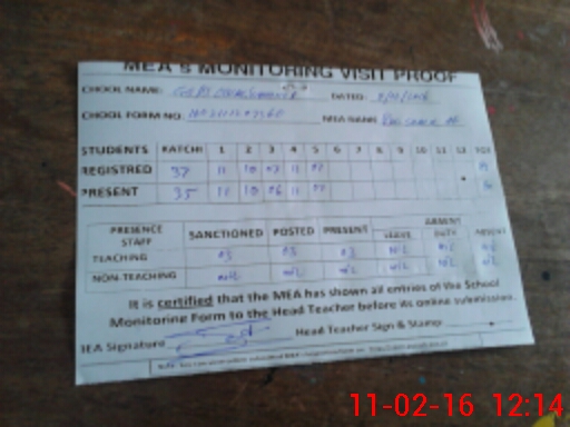 | Attendance Register | Head Teacher | MEA with School | Visit Proof |