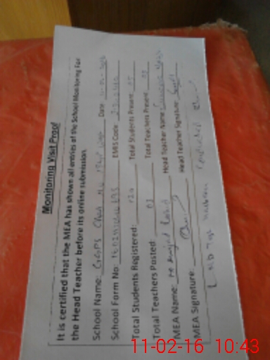 | Attendance Register | Head Teacher | MEA with School | Visit Proof |