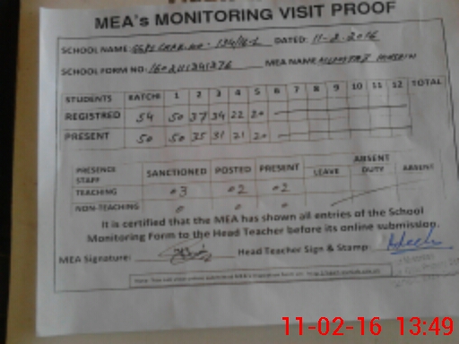 | Attendance Register | Head Teacher | MEA with School | Visit Proof |