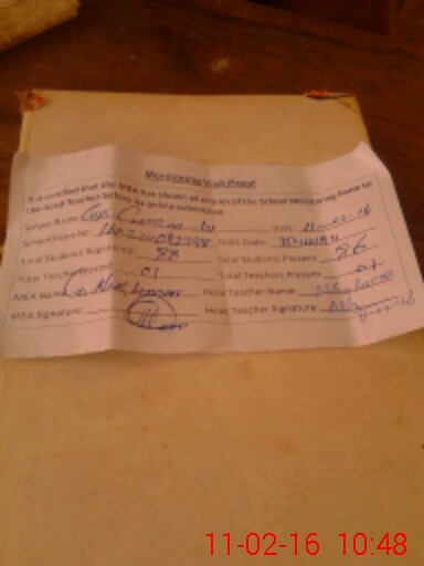 | Attendance Register | Head Teacher | MEA with School | Visit Proof |