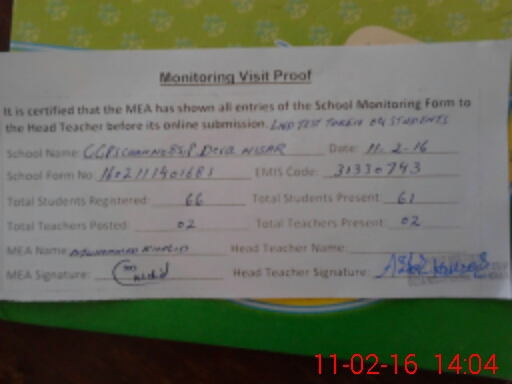 | Certified that this School was Inspected by the Undersigned MEA/DMO Today and the Information Stated Above is as Per Record. | |||||