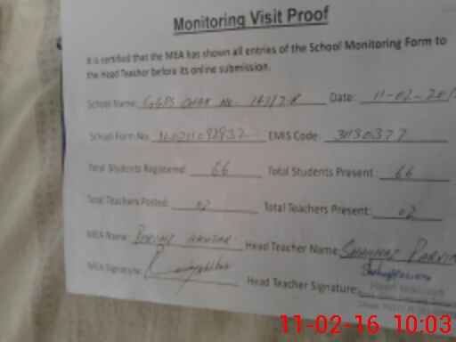 | Certified that this School was Inspected by the Undersigned MEA/DMO Today and the Information Stated Above is as Per Record. | |||||
