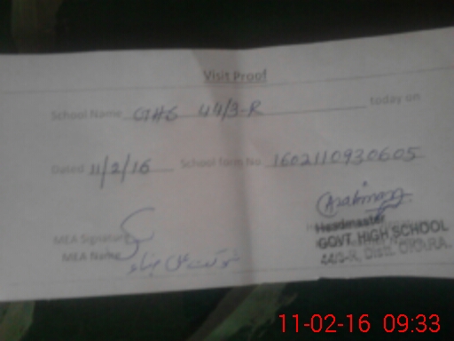 | EMIS Code: 39320099 | Name of School: GHS CHAK 44/3-R | |||