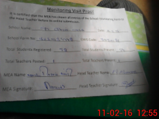 | Attendance Register | Head Teacher | MEA with School | Visit Proof |