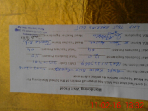 | Attendance Register | Head Teacher | MEA with School | Visit Proof |