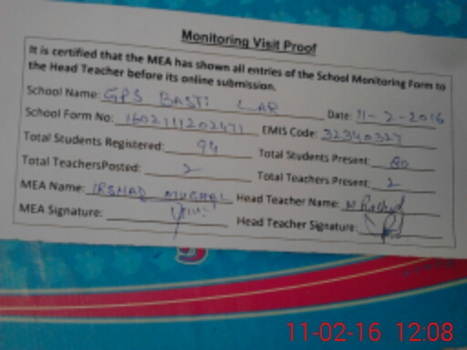 | EMIS Code: 32340327 | Name of School: GPS BASTI LAR | |||