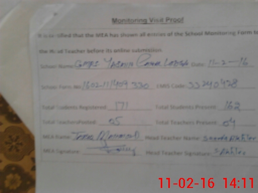| EMIS Code: 33240428 | Name of School: GMPS YASMIN CANAL LODGE | |||