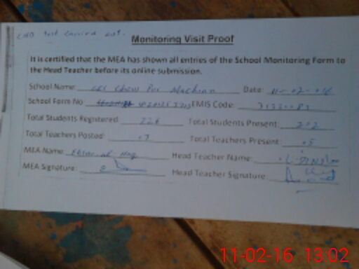 | Attendance Register | Head Teacher | MEA with School | Visit Proof |