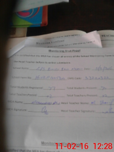 | Attendance Register | Head Teacher | MEA with School | Visit Proof |
