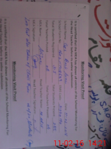 | Certified that this School was Inspected by the Undersigned MEA/DMO Today and the Information Stated Above is as Per Record. | |||||