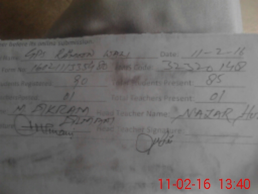 | EMIS Code: 32320148 | Name of School: GPS RAHMOON WALI | |||